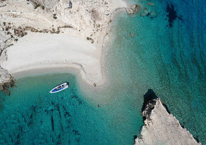 After that magnificent experience, we will continue towards the famous Aspronisia which are two white rocky islands, interconnected underwater with white sandy path, which creates a blue lagoon effect. A stop there is a must and while you enjoy the waves and the natural beauty of the area your skipper will be bring you fruit and drinks and perhaps some seafood that he has caught there.
